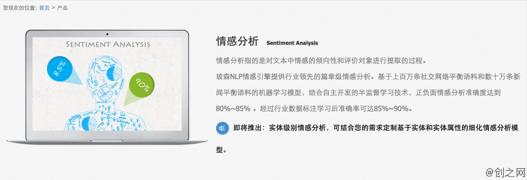 如此看来,摆在玻森面前的是一个广阔的市场:退可帮助公司新闻监测、品牌分析产品口碑;进可作为技术与解决方案提供商,面向不同行业提供定制服务,与第三方公司和企业携手建立产品分析模型。举例来讲,商家想树立品牌形象,就必须时刻了解顾客反馈、从多种维度分析顾客心理,尤其是跟踪顾客的负面评价内容;这便需要用到文本情感分析。