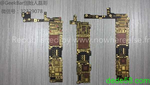 从左到右为新曝光 iPhone 6、iPhone 5S、此前曝光 iPhone 6 主板