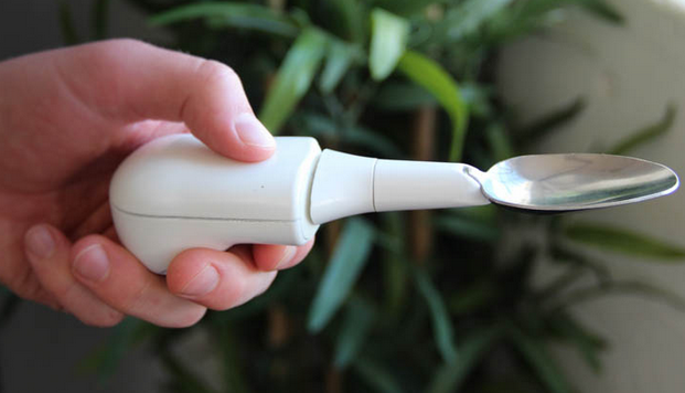 这款硬件名为 Liftware, 它可以辨别出必要运动(将勺子送到嘴边的动作),然后取消震颤运动。这种勺子能让用户在用餐时把精力放在其他事情上,而不用担心将食物洒得到处都是,大大提升了他们的独立能力和生活质量。