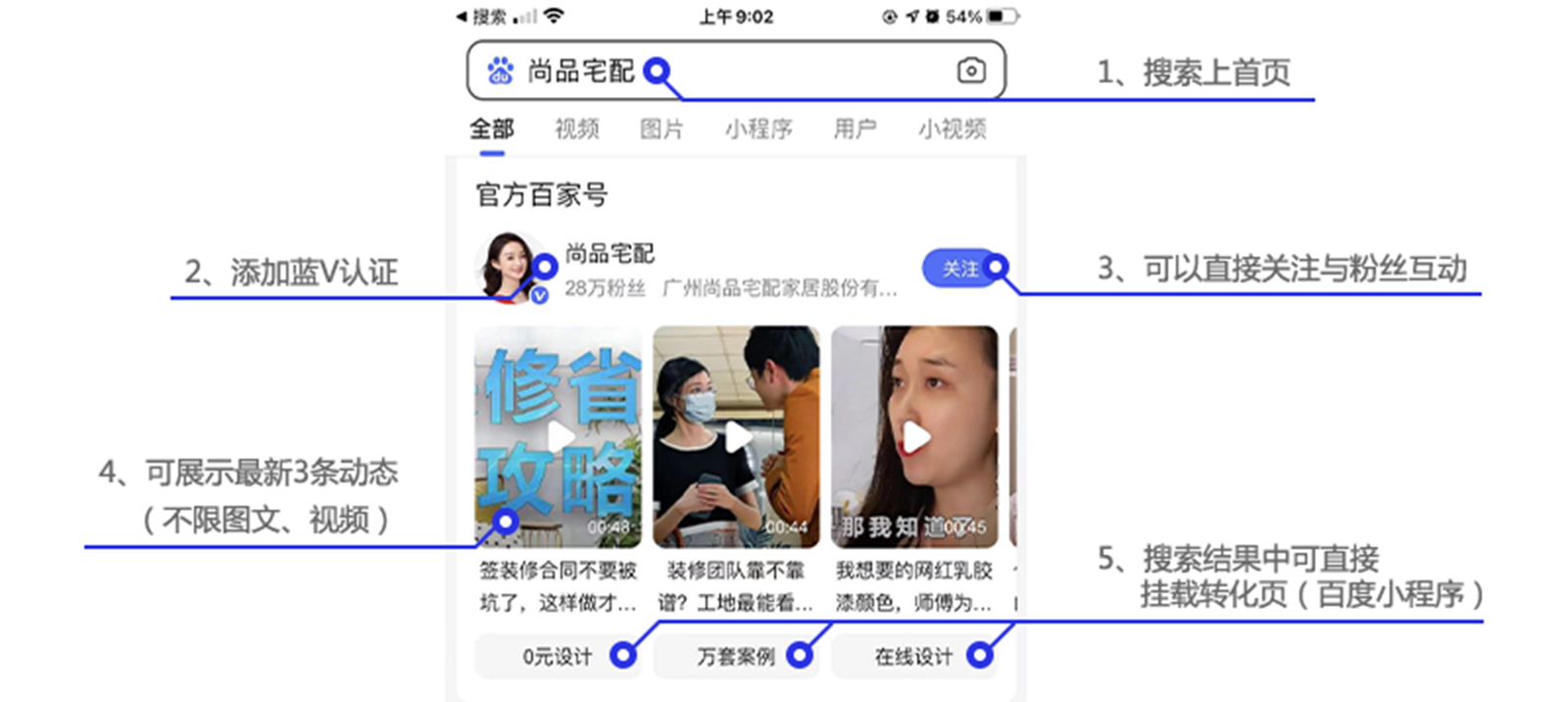 品牌企业标准官方蓝V标识贴吧官方认证百度直播权限搜索首屏展示卡